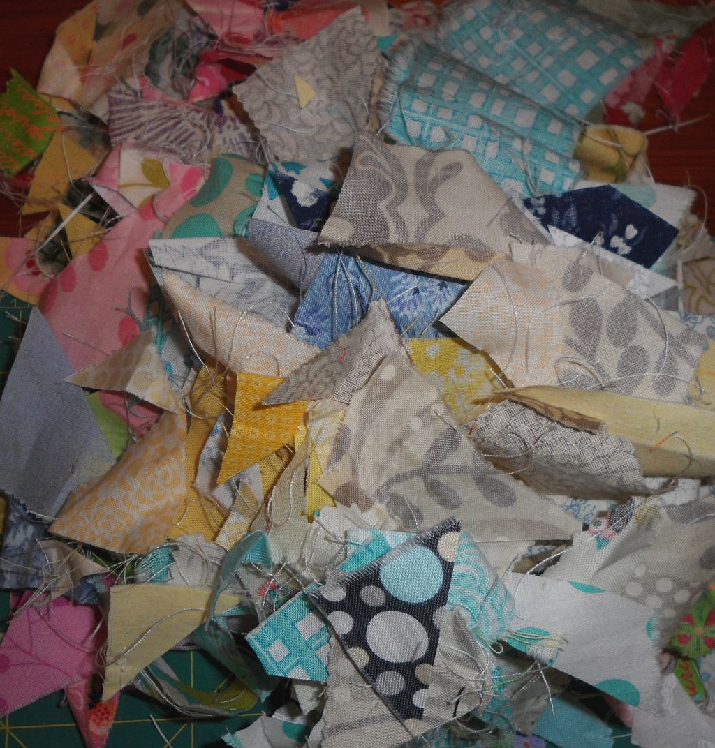 Good grief! It has poured today. Never mind that, the Fraser River is at flood stage which is most strange for this time of year but it has been a strange year. What does one do when it pours? I spent the day in what Husband is referring to as my quilting catacombs. Yes, I quilt downstairs but it is far from catacomb-like! So HUGE progress today. I completed all 80! Yes, all 80 paper pieced scrappy string blocks. Wahoo! I am really sick of making them . It will be a frosty Friday before I decide to make another one of these projects. If I start one, somebody slap me! The crazy thing is that the scrap box (which I just happened to notice, used to contain Tequila, and came to me from my mother's house. What?) does not seem to have diminished at all in scrap contents. It still appears full and yet I have just made enough blocks for an 80" x 100" quilt!!!!!